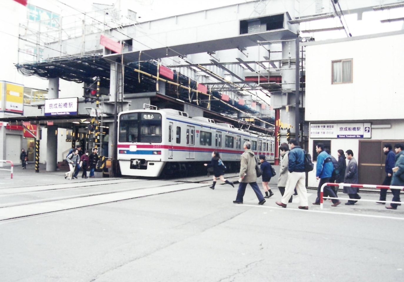 上の画像は京成電鉄船橋駅が高架化される前のものです。