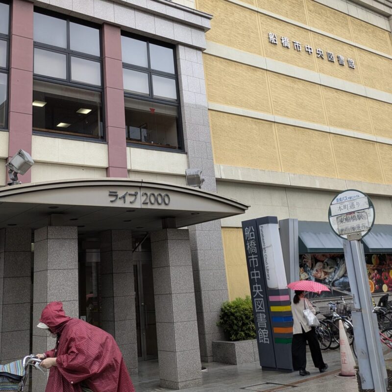 交差点を左に歩いていくと進行方向左手に船橋中央図書館があります。