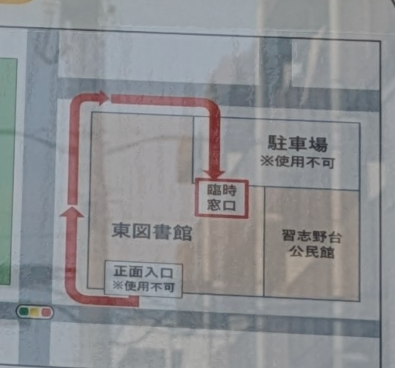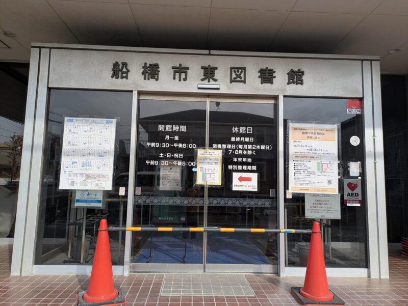 僕は船橋東図書館を訪ねましたが、残念ながら改装工事中で館内に入ることができませんでした。館内はおろか、駐車場も工事中で車を停めることもできませんでした。