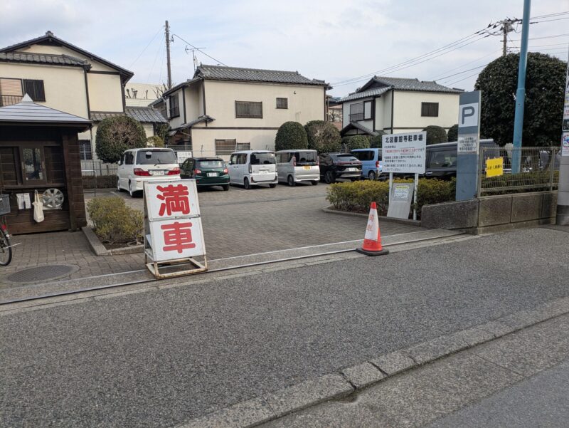 駐車場は道路挟んだ向かい側にあります。収容台数は20台です。ちなみに上の画像は午後に撮影したものですが、「満車」となっています。